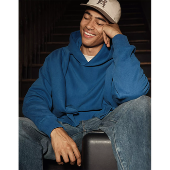بيع بالجملة بلوفر رجالي أزرق كبير الحجم من القطن السميك تيري الفرنسي شعار مخصص ملابس الشارع البلوز للرجال