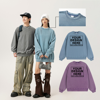 400G Gewassen En Verontruste Unisex Trui Met Ronde Hals Oversized Franse Badstof Gewassen En Bedroefd Heren