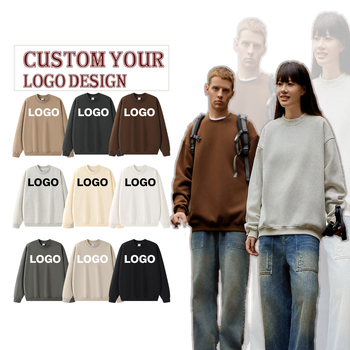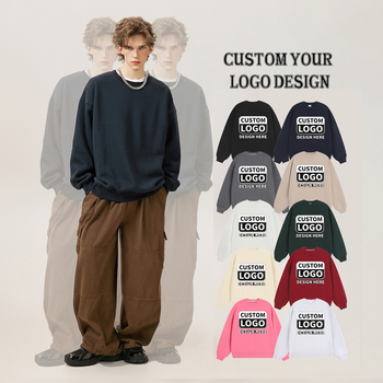Reliëf Custom Effen Fleece Zwaargewicht Katoen Groothandel Ronde Hals Trui Sweatshirt Hoodie Voor Mannen