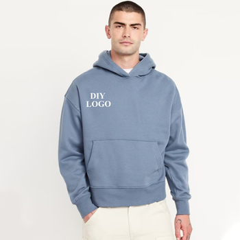 เสื้อสเวตเตอร์แบบสวมหัวคอกลมมีฮู้ดสำหรับผู้ชายผ้าฟลีซแบบเรียบลายนูนออกแบบได้ตามต้องการ
