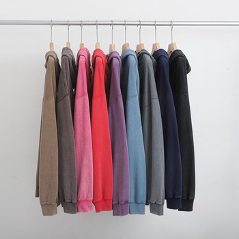 เสื้อสเวตเชิ้ตคอลูกเรือสีขาวซักกรดสำหรับผู้ชายเสื้อมีฮู้ด French Terry ออกแบบได้ตามต้องการ